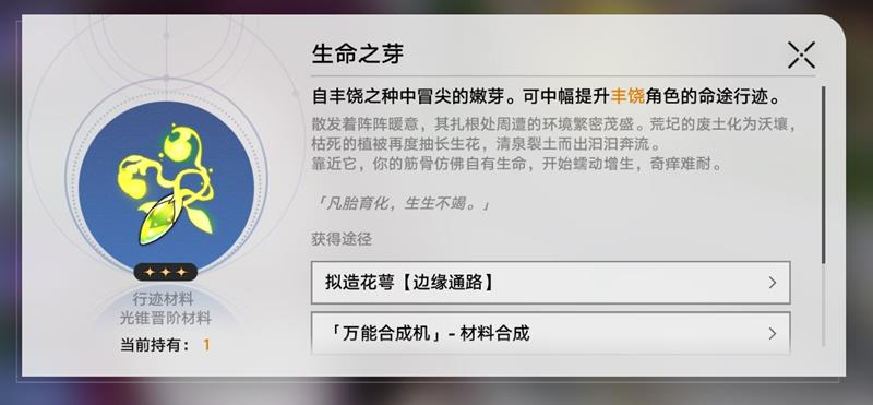 自丰饶之种中冒尖的嫩芽。可中幅提升丰饶角色的命途行迹。
