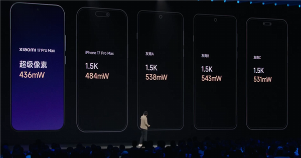 简单一句话总结,小米17 Pro Max拥有一块顶级的国产屏幕,而且用1.5K的功耗实现了2K的清晰度,并且亮度、色彩表现远超同规格,表面覆盖最新的小米龙晶玻璃3.0。