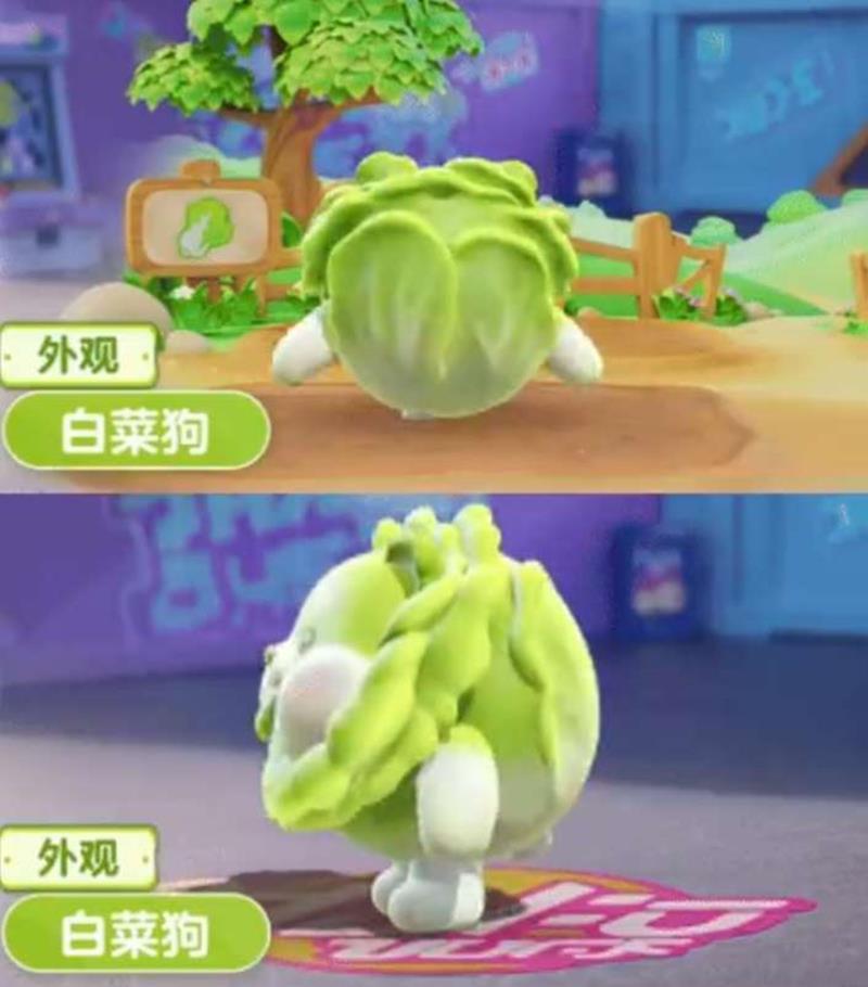 白菜狗:圆滚滚的绿色身体,活力满满,仿佛一颗行走的大白菜,能为蛋仔们带来欢乐和好运。
