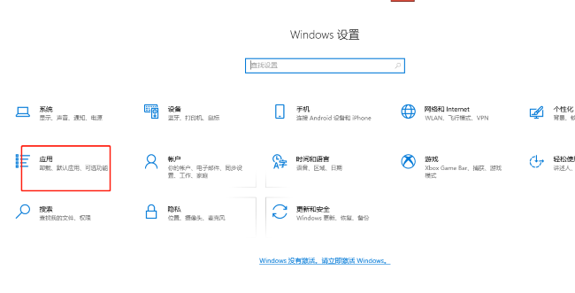 1、"win+i"快捷键打开设置界面,点击其中的"应用"选项。