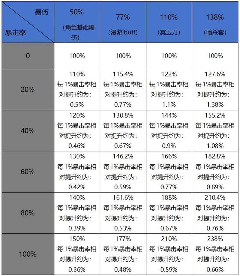 以红眼为例,其暴击率设定为60%,佩戴冥玉刀时,2.28%的暴击率收益约为1.76%,此时力智收益大于暴击收益。