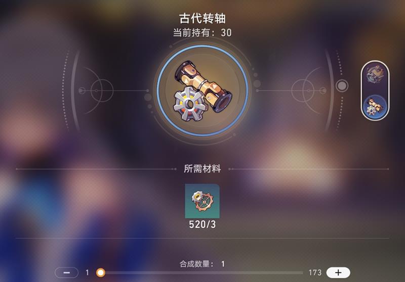 3个古代零件可以在材料转换机中合成1个古代转轴。