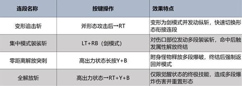 斧模式突进直斩距离提升,适合长距离追击;剑模式连击积累觉醒槽效率翻倍,强化持续压制能力。