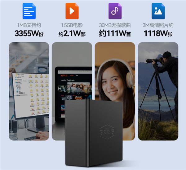 为融入家庭环境,F4 SSD在设计上做足功夫。机身尺寸控制在135 x 58×160mm,重量仅650克,可轻松摆放在书房书架或客厅电视柜上,不占用多余空间。散热与静音表现尤为出色,通过一体化散热片与智能温控风扇组合,设备运行噪音低至20dB,夜晚观影时几乎无感知,完全适配家庭安静环境。操作门槛也大幅降低,抽屉式SSD安装无需工具,TOS 6系统内置“家庭影音库”“照片保险箱”等一键配置模块,老人孩子的照片自动备份、多设备影音共享等功能,新手15分钟即可完成设置。