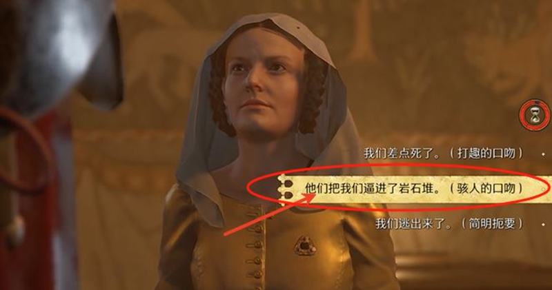 2、对话到夫人想听自己的冒险故事,选择“我很乐意”。