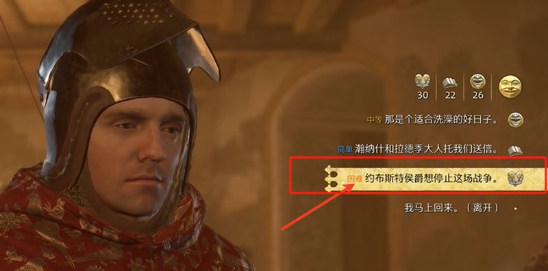 3、一直到故事从哪里开始讲的时候,选择“约布斯特侯爵想停止这次战争”