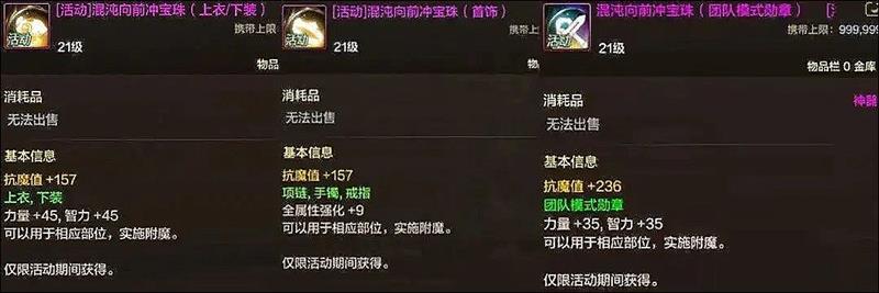 三、攻坚竞拍加码除了之前爆料的3颗宝珠外,在体验服还发现了幸运符、奇迹变换石、秘能之牙等道具。