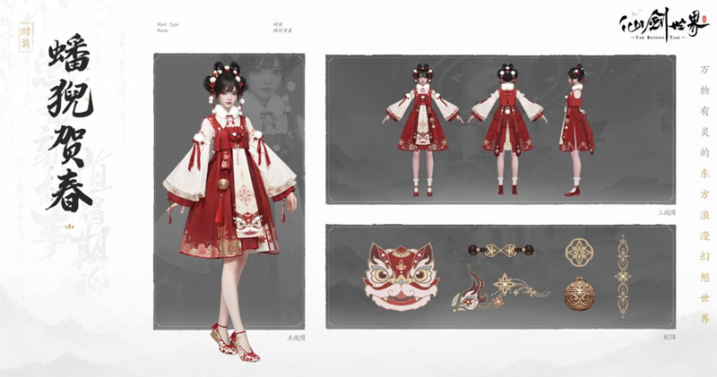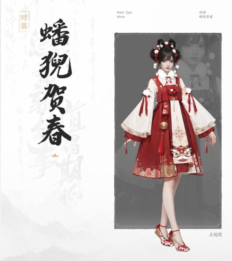 在《仙剑世界》的奇幻江湖中,首发限定时装“蟠猊贺春”以其独特的东方美学和浓郁的新年氛围,成为了玩家们瞩目的焦点。这套时装以中国传统节日——春节为灵感源泉,将古老的神话元素与现代审美巧妙融合,展现出别具一格的浪漫与庄重。