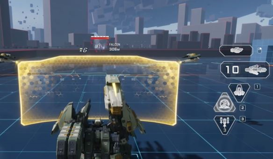 4、2技能:变为堡垒,不可以移动,在前方设置一个护盾,增加武器的锁定距离。