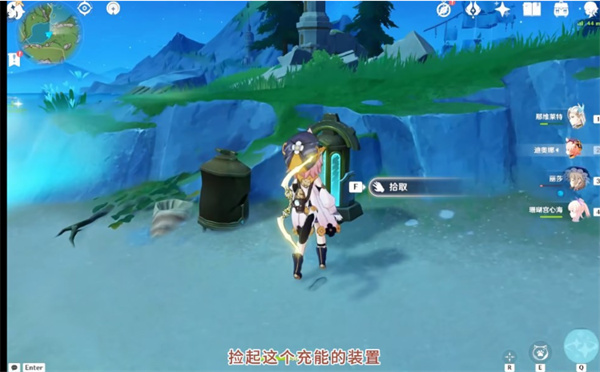 7、前往附近的笼子,将充能装置放置进去,释放被困的水元素晶体。