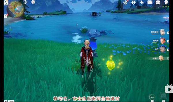 3、出现水元素晶体,选择【移动】,晶体会自动移动到宝箱旁。