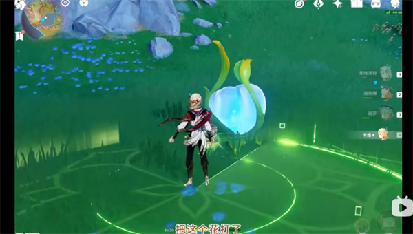 2、向小地图西北方向走,找到一朵蓝色花朵并攻击。