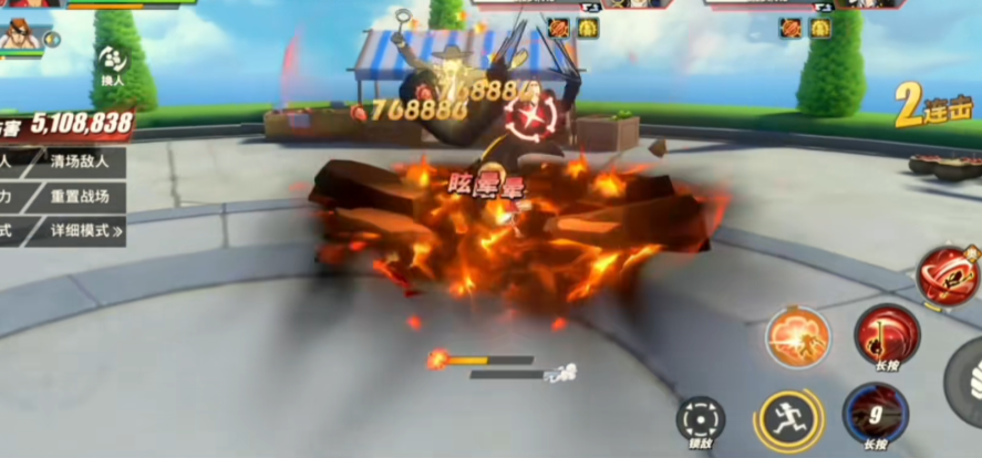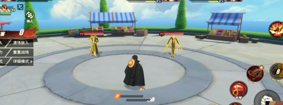 三挡技能:使用大手发动旋转攻击,长按可释放“橡皮·怪鸟枪”,从高处使用大手发动强力打击。“橡皮·橡枪乱打”,从较高处利用大手对敌方进行连续打击。“橡皮·巨人之鞭”:使用巨大化的脚横扫攻击敌人。“橡皮·巨人雷斧”:将巨大化脚伸入云层中利用雷电放出巨人之斧。