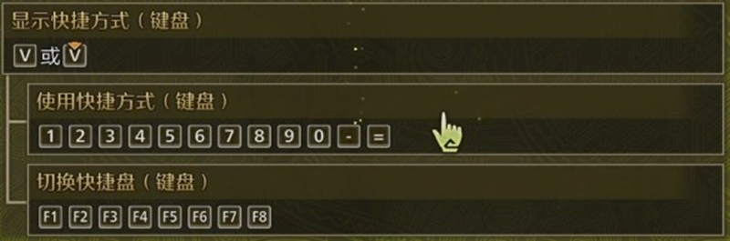 可通过“V”或“V按住”显示登记在自定义快捷方式的内容。