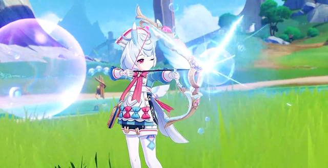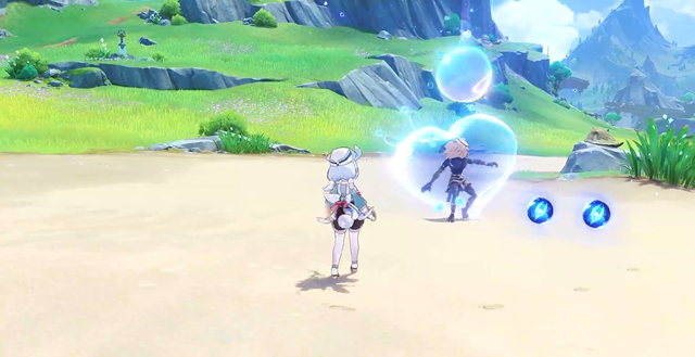 普攻:单次射出箭矢,造成水元素伤害。重击:蓄力后射出更精准的水元素箭矢,长按时会形成类似泡泡的视觉效果。下落攻击:从空中跃下,释放范围性水元素伤害。实战评价:普通攻击并不是希格雯的核心输出方式。她的主要价值来自于战技的治疗和增伤能力,因此普通攻击几乎没有培养价值,在天赋升级时可以直接忽略。