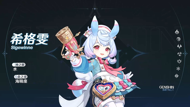 单次伤害:20%生命值上限总伤害(0命6次):120%生命值上限总伤害(4命12次):240%生命值上限冷却时间:18秒元素能量消耗:70实战评价: 希格雯的元素爆发主要用于速切补伤害,但0命时伤害一般,主要用于额外的水元素挂载。如果你的希格雯只是辅助治疗,那么大招的优先级很低(6级即可)。但如果你有4命或6命,那么她的元素爆发会变成一个高频输出技能,值得投入更多资源升级。