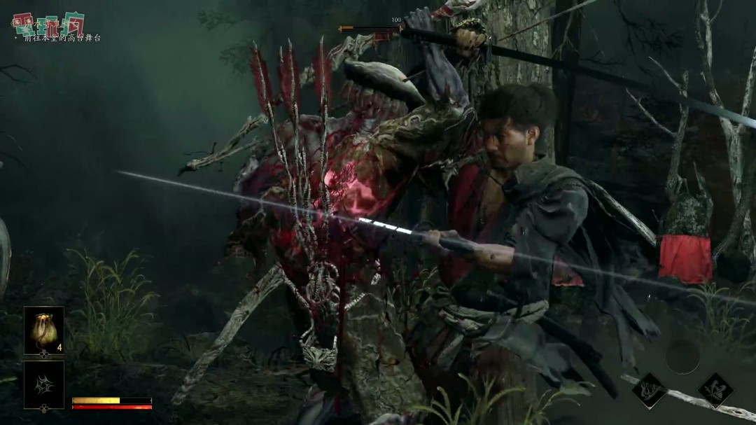 当玩家把敌人的耐力打光的时候,就可以使出终结技,也就是绷直一闪。