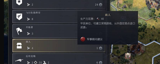 完成贸易所需的市政后,点击任意城市的单位栏可以生产商人。