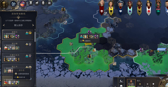 除了文明境内的资源,我们还可以通过商人贸易获得更多资源。