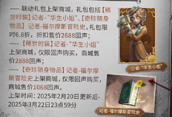 稀世时装:记者“华生小姐”,仅限回声购买,售价2888回声。