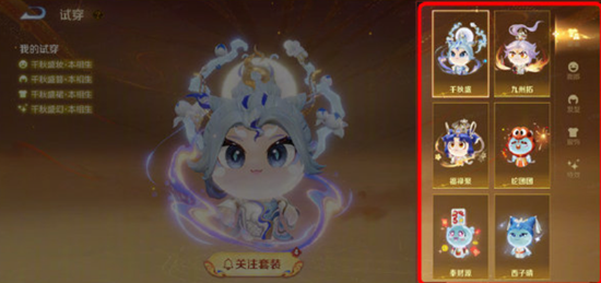 点击【试穿】,可自由搭配并预览更多外观效果,解锁更多种灵宝穿搭,搭配到喜欢的外观别忘了【关注】哦~