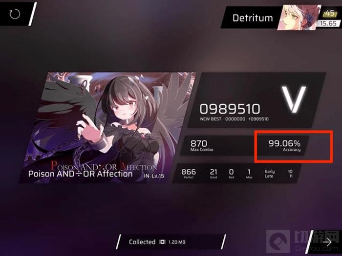 2.最高收歌定数:玩家ACC达到100%的曲目中定数最高的那一首(称为φ1)。
