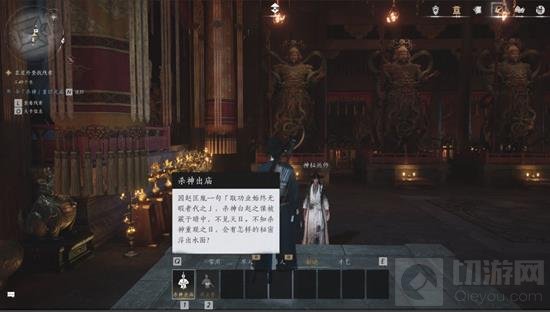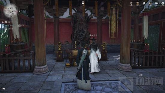 与神秘画师对话:在庙中,你遇到了一位神秘的画师,他似乎对武成王庙的过往了如指掌,言语间透露出对杀神的敬畏与期待。对话结束后,他让你祈求杀神显灵,以助你完成任务。