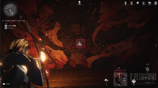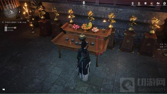 射击灯盏:你瞄准屋顶悬挂的三盏灯,用力将火箭射出。火箭划破空气,精准地击中每一盏灯,瞬间点燃了神像前的灯火,照亮了整个武成殿。