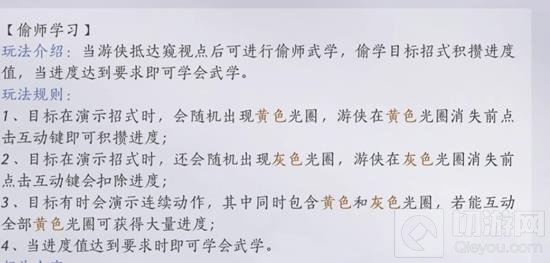 4.按提示进行偷师学习,累计进度达到要求后即可学会武学