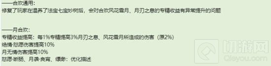 专精收益提高:每1%专精提高3%月刃之息、风花雪月所造成的伤害(原为2%),使月合欢玩家在提升专精时能够获得更高的伤害加成,增强了角色的输出能力.