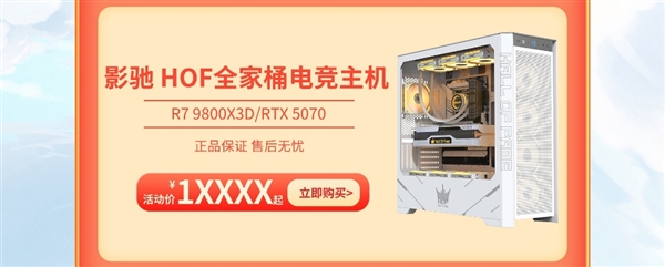 影驰 HOF全家桶电竞主机,均采用9800X3D CPU与HOF名人堂显卡搭配组合,HOF系列显卡采用专属沉金工艺PCB与日系黑金全固态电容,具有耐超频与寿命更长的特性,时刻辅助玩家畅玩2K/4K游戏,限时特价15799元起。