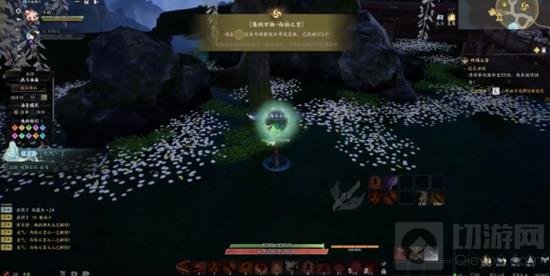 转身看向对面的大石头,有莲花灯伫立着的地方,在大石头下找到灵体。