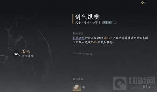 领悟了剑气纵横心法后,在人物的被动技能栏中就会多出一个技能。该技能的效果为在使用剑类技能对敌人造成伤害之后,会给到敌人剑花印记,这印记可以引爆,在引爆后会对周围的敌人造成溅射伤害,伤害值达到100%。