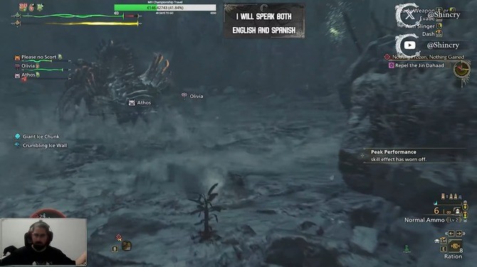 ·尽管Shincry在挑战开始前对游戏中白炽龙任务过程中大大小小的怪物已经极其熟悉,本人信心十足,但是过程依然难度高到难以想象,只要一受到任何伤害,随即退出重来,这让Shincry承受了巨大的精神集中压力。