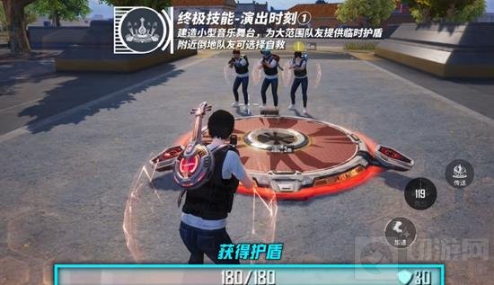 第三个技能是传送,在200米内点传送,就能来到小区音为舞台,如被敌人击倒可选择传送过来进行自救。