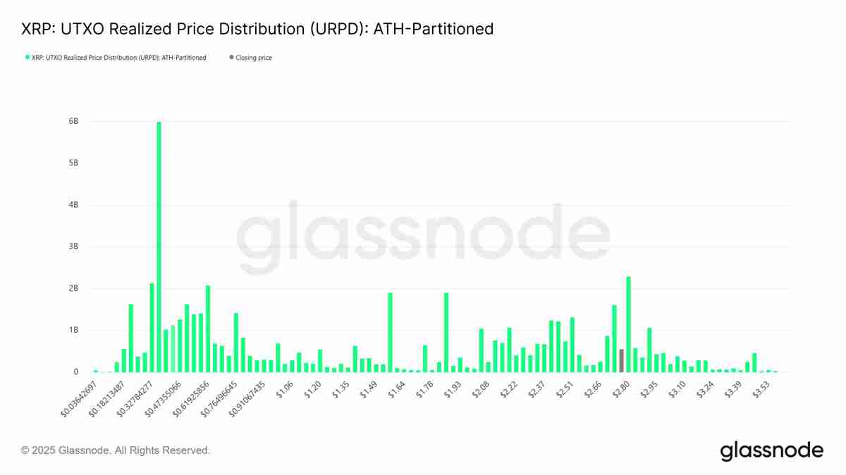 XRP UTXO实现价格分布图。来源:Glassnode