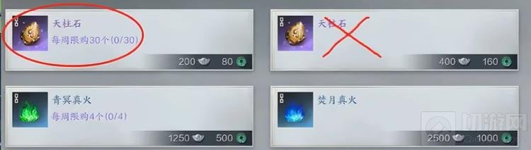 最后记得第三天开始陆续屯天柱石、鸿蒙冰心、星魄精华,这3样材料后期极缺,每周限购一定要买。