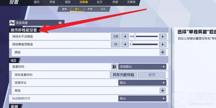 在控制器设置中,会有一个“操作杆性能”的选项。点击这个选项,玩家将进入灵敏度调整页面。