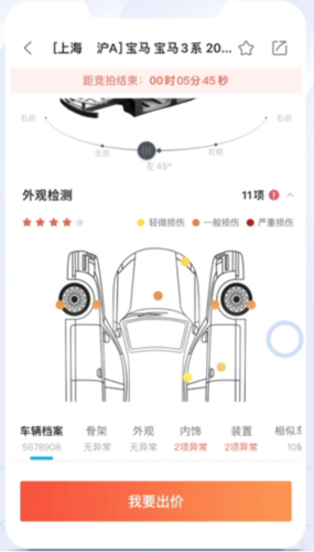5、在车源详情页面中点击【 我要出价】进行在线竞拍获得车源