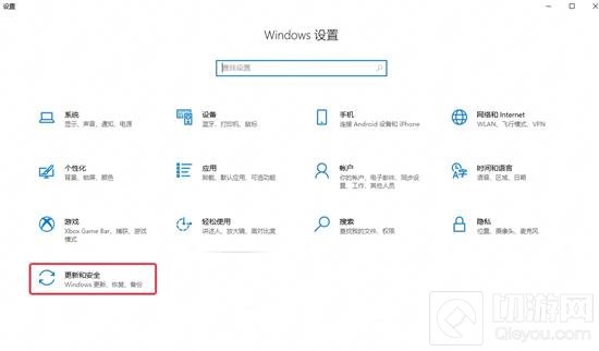 2.设置界面选中更新和安全。