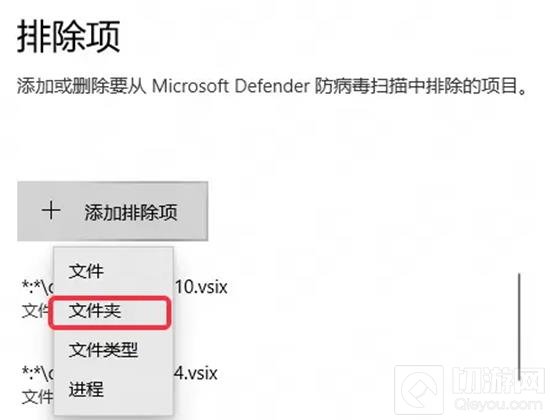 6.点击添加排除项,将游戏目录所在文件夹放入即可。