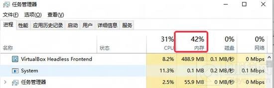 2.检查一下当前是否还有其他程序在运行,选中不必要的程序鼠标右键结束进程,释放内存。
