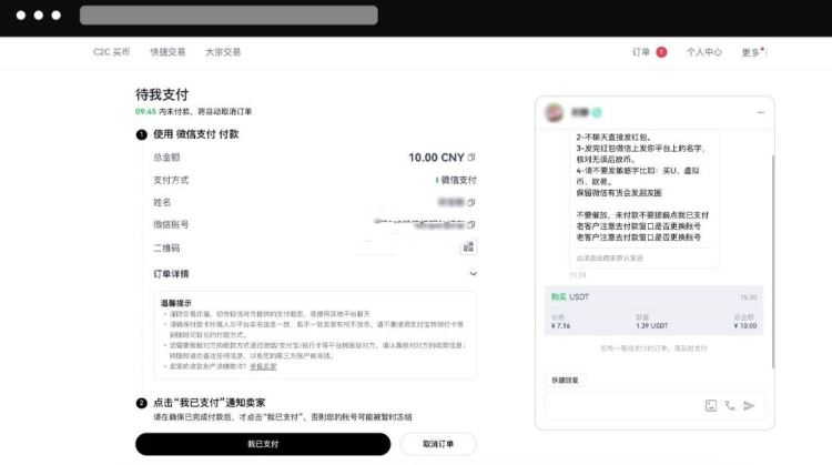 4、按照商家要求对话框“提供付款卡流水”-付款完成后点击“我已转账”-商家收到款后放币