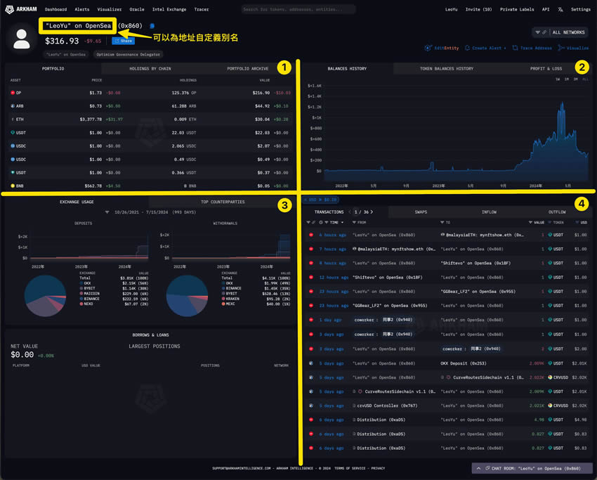 不论是查询历史交易记录、即时监控钱包动态、视觉化交易行为,还是自订实体标签与设置警报,Arkham 都提供了丰富的功能来帮助使用者更深入地了解区块链上的资金流动。