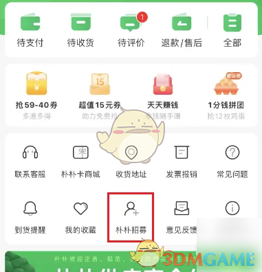 2、进入我的界面,点击朴朴招募进入。