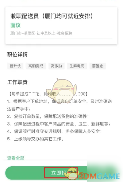 4、进入岗位详情界面,点击立即投递进入。