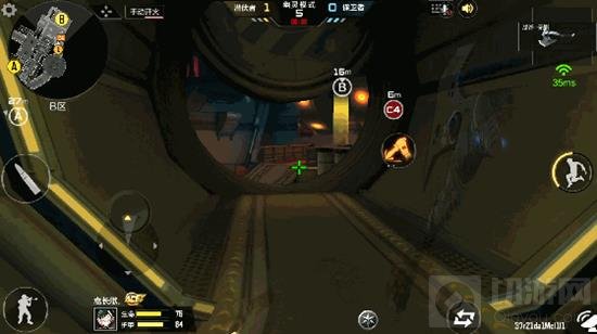 B点有点困难,虽然也有三层,但由于安包点一面靠墙,使得周围只有180度角度的观察范围,保卫者背靠墙即可观察大部分区域。正面攻完全不适合,从B桥上来时会完全暴露在敌人的火力之下。从左侧管道也不太适合,因为太过重要,所以很多人都会尤其重视该处。最好的方式还是使用鬼跳,从B点两侧的障碍物跳上B点,不要击杀任何敌人以免暴露,安包后再攻击敌人,以拖延时间为主。