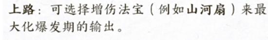 增伤法宝:例如山河扇,可以在爆发期提供额外的伤害加成,最大化输出。