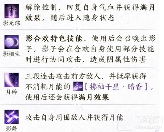 影合欢特色技能,使用后会召唤出影子,影子会在合欢自身使用部分技能时进行协同攻击,造成阴属性伤害。