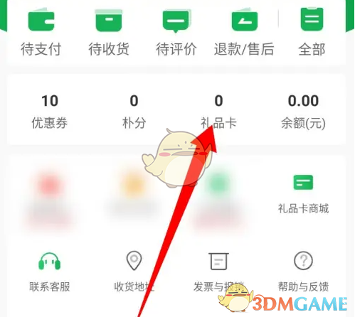 2、进入我的页面后,点击礼品卡选项打开。